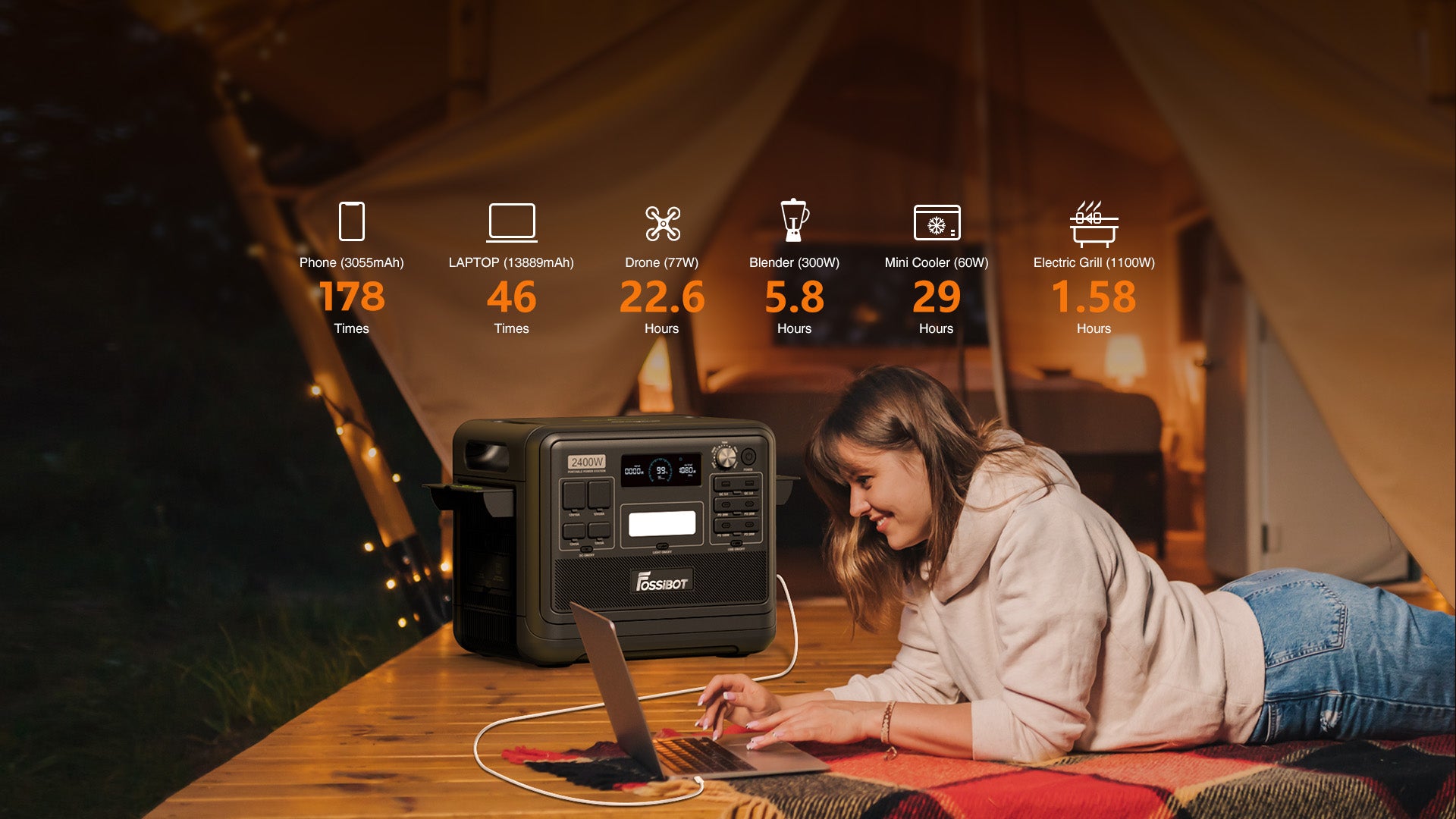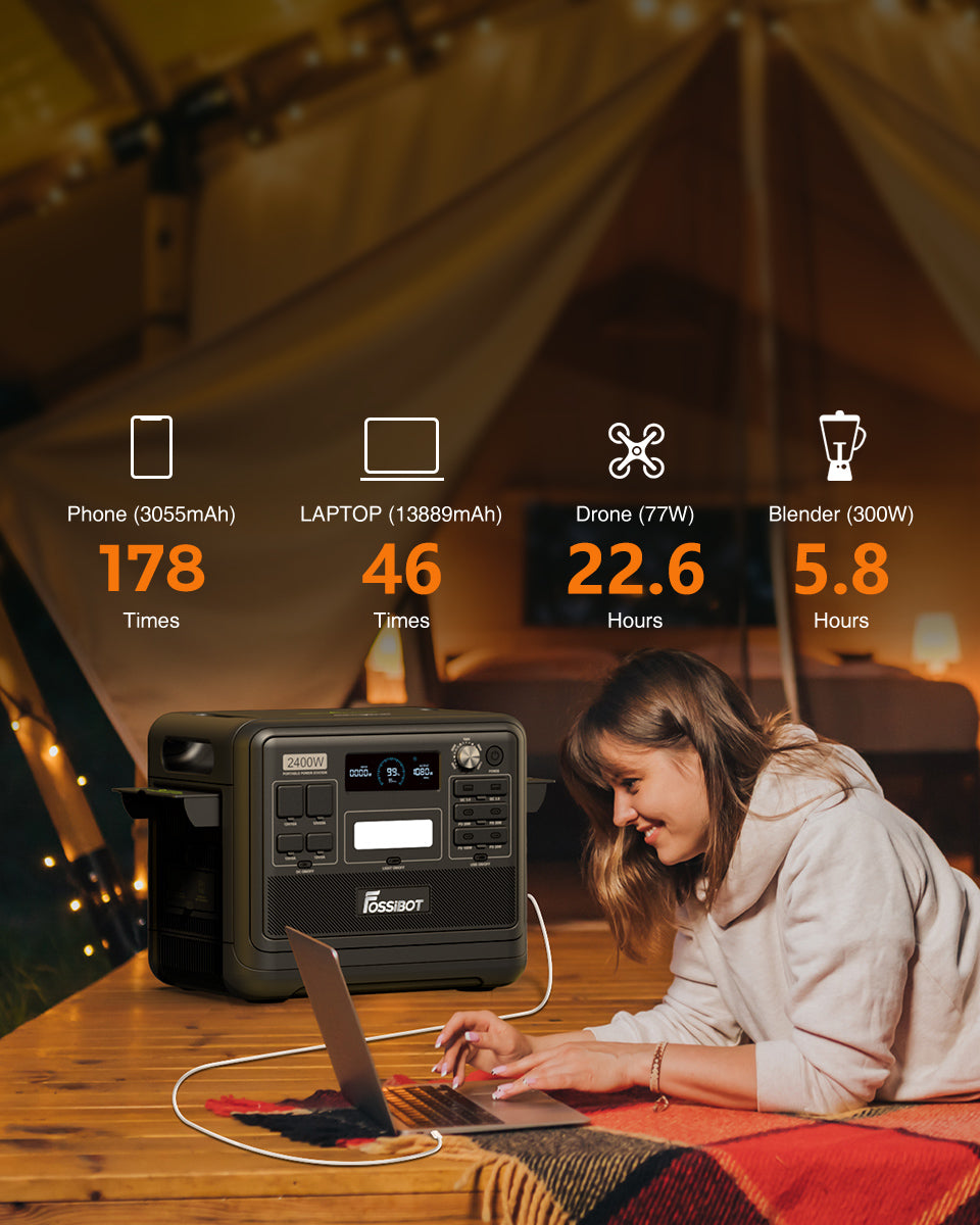 On your journey or encounters emergencies, the F2400 portable power station serves as a source of light or SOS flash light.