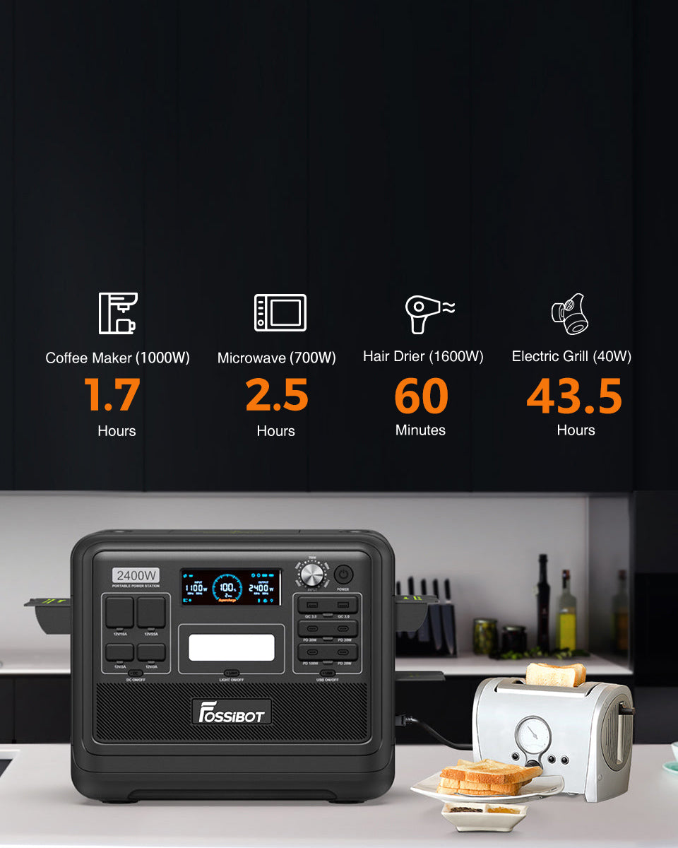 F2400 comes with pure sine wave, high efficiency, stability and no damage to electrical appliance.