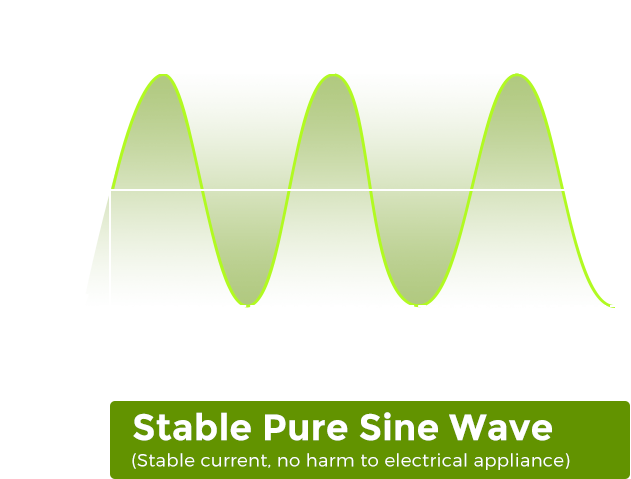 F2400 comes with pure sine wave, high efficiency, stability and no damage to electrical appliance.