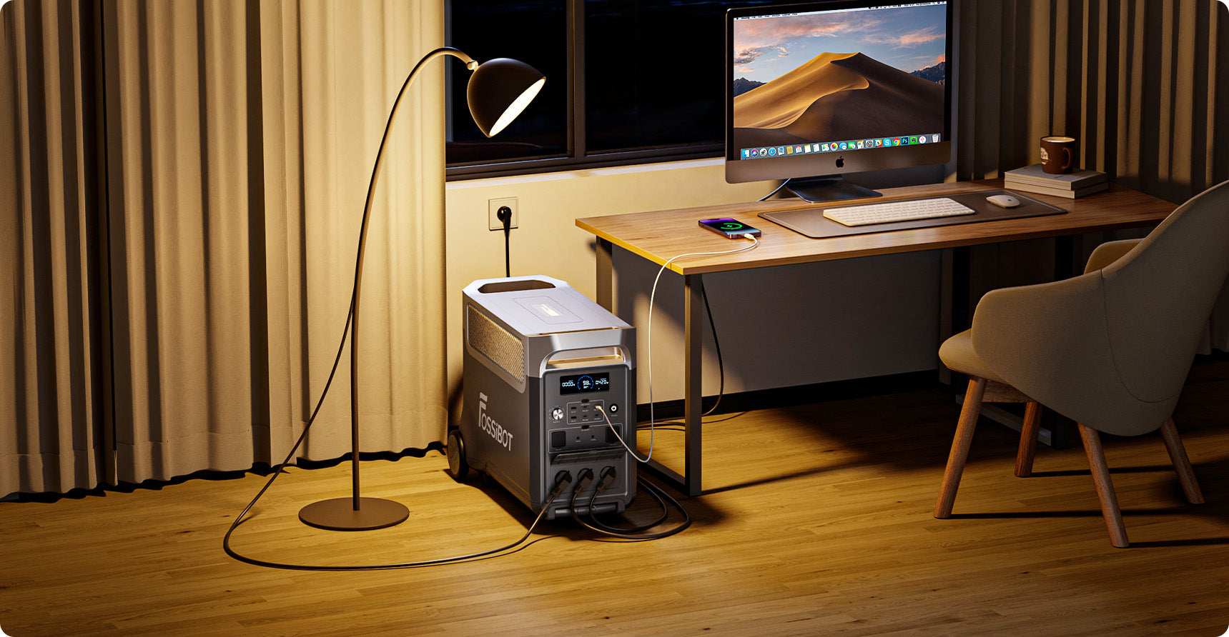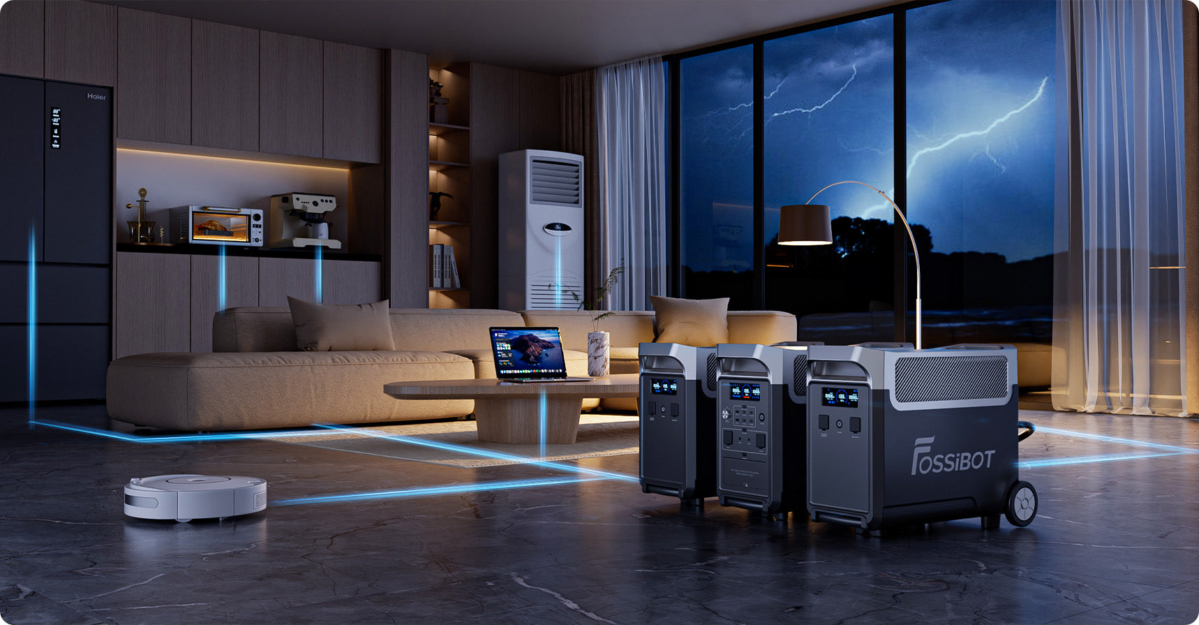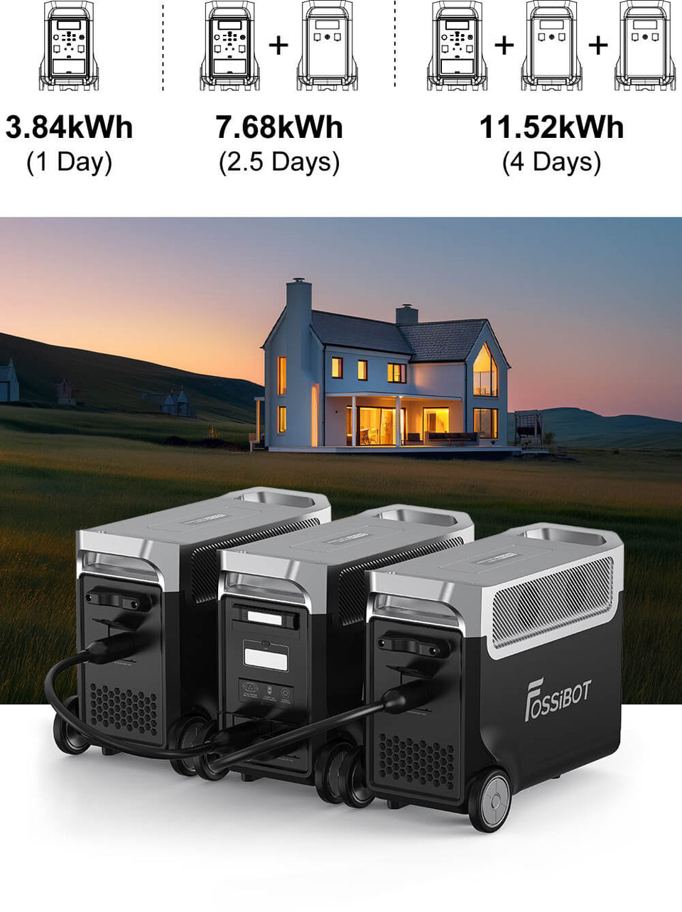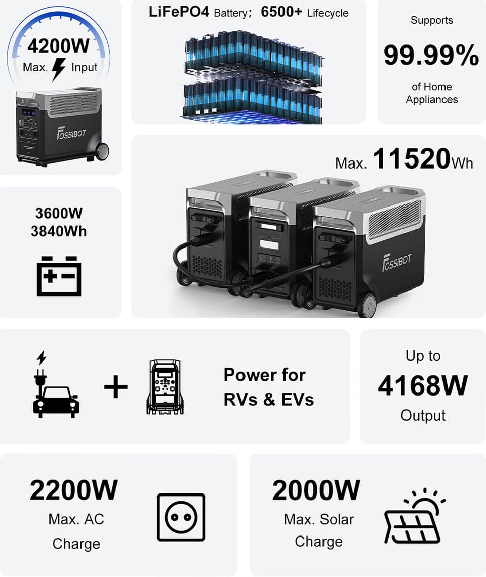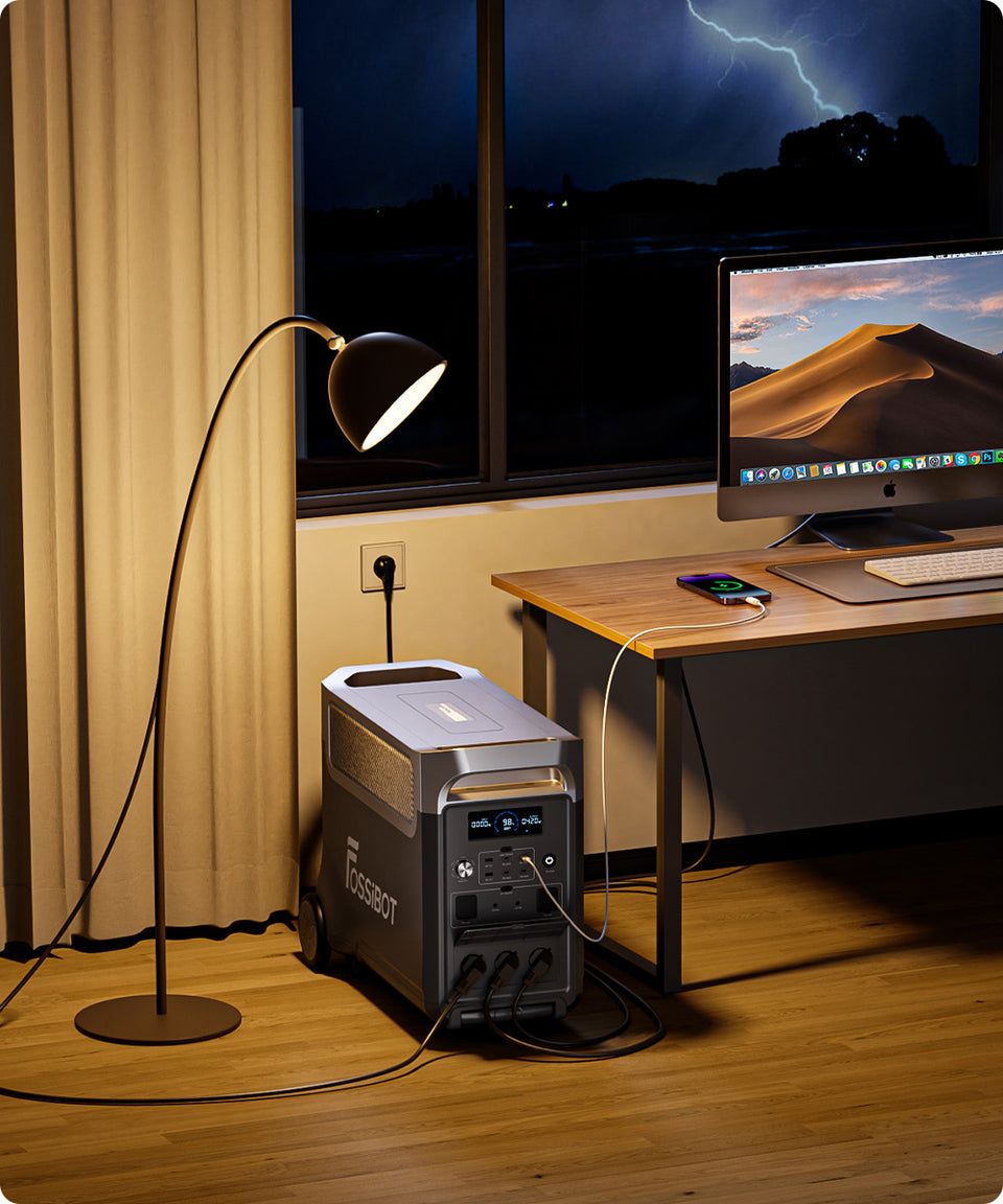 A: Our Power Station supports various devices with different voltages and power and can complete the switch within 10ms. Different from traditional UPS, FOSSiBOT F3600 also supports DC & AC charging.