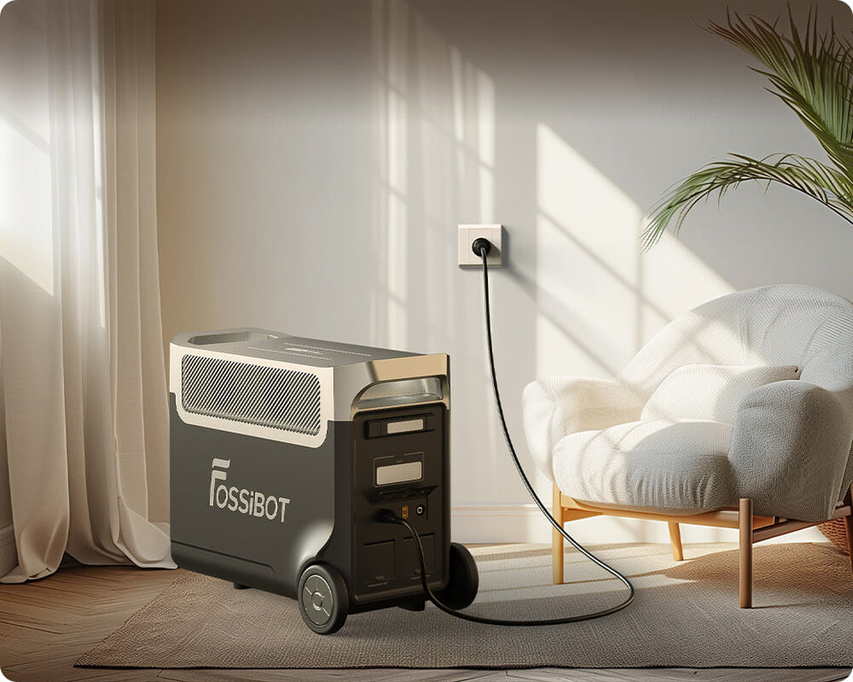 A: FOSSiBOT F3600 Pro Portable Power Station enables fast charging. By AC+ solar panel charge, it can be recharged to 80% in 50 minutes and 100% in 1.5 hours for EU version.